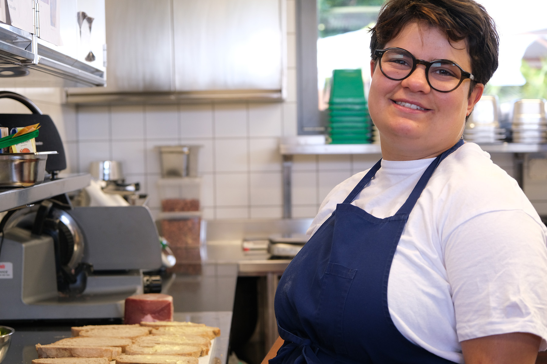 Auf dem ersten Arbeitsmarkt habe ich wegen des ADHS keinen Ausbildungsplatz bekommen. Über die Berufswahlschule habe ich verschiedene Institutionen in der Region angeschaut. In der Stöckenweid hat mir gleich die Küche richtig gut gefallen. Ich dachte mir, wow, die Küche ist schön, hell und auch nicht so klein, wie an anderen Orten.