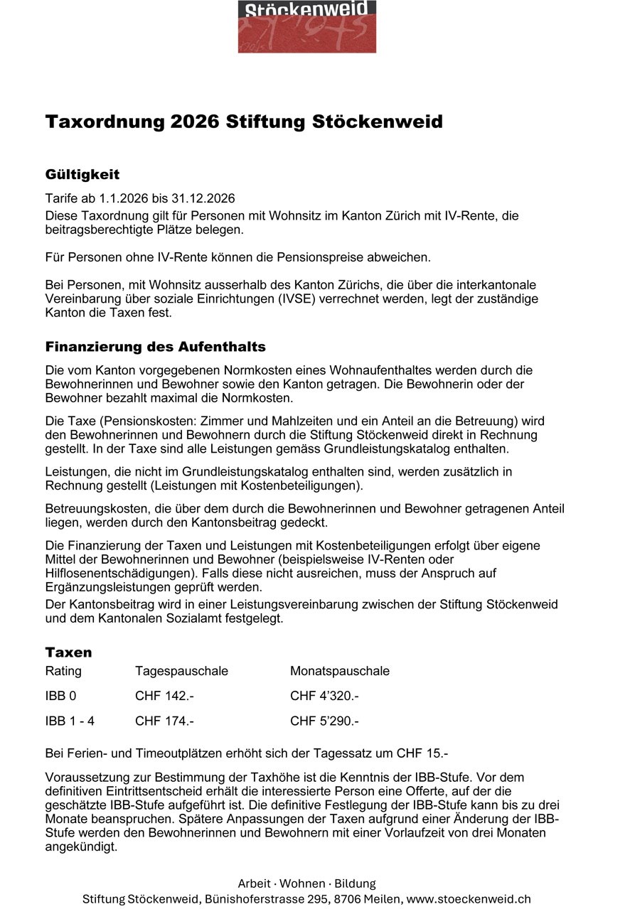 Taxordnung 2026